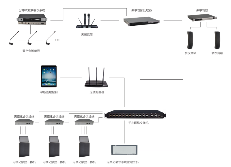 ⊙支持会前准备(设置主席机与代表机、添加参会人员、设置欢迎词、设置会议主题、安排参会人员座位、上传会议资料并设置文件权限、添加投票并选择参与投票人员);会中控制(支持签到、文件智能分发、会议同屏互动演示、外部信号到终端显示、终端任意画面上大屏幕、会议服务、会议投票、会议交流、交互式电子白板)、会后保存功能;
