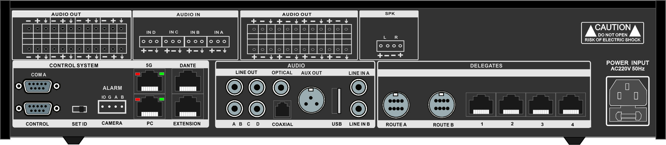 同声传译:支持63+1个通道,输出信号纯净稳定。
