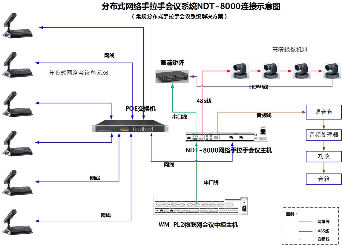 NDT-8000A分布式网络POE全数字会议系统连接图